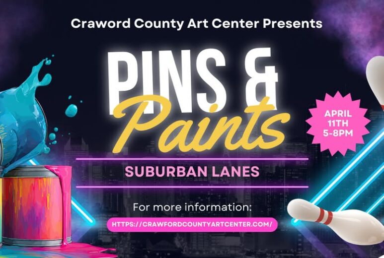 Let’s glow! 🎳🎨 The Crawford County Art Center invites you to Pins & Paints at Suburban Lanes — a family-friendly night of glow bowling, painting, and pizza!