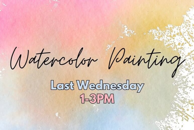 Join us for a Free Watercolor Painting class the last Wednesday of each month from 1-3 pm! This class is hosted by Barb Hughey. No registration required, and ages 12+ are recommended. Donations are appreciated.