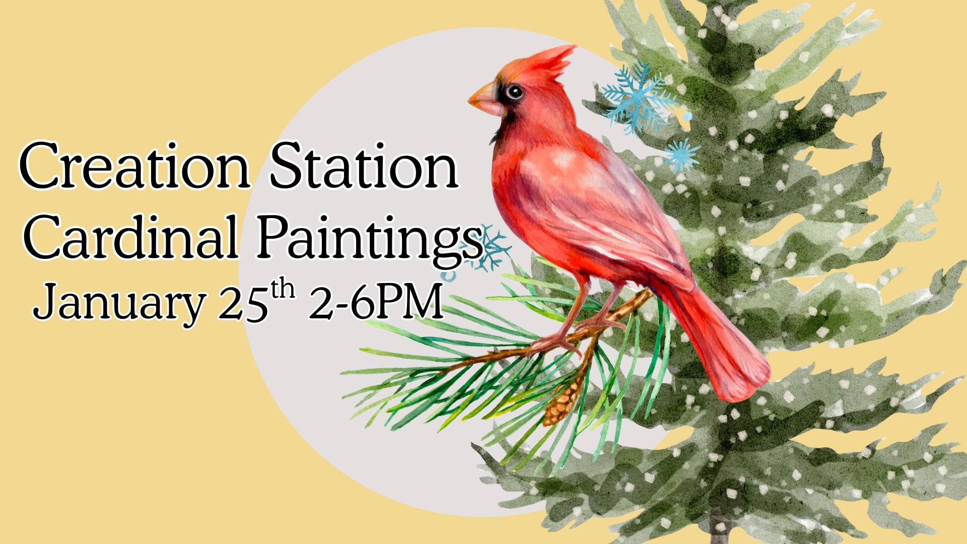 Learn step by step how to paint a beautiful male cardinal. Creation Station free drop-in art classes are for all ages and abilities. You are welcome to bring food and beverages to enjoy. This series of classes is generously funded by the United Way of North Central Ohio. |