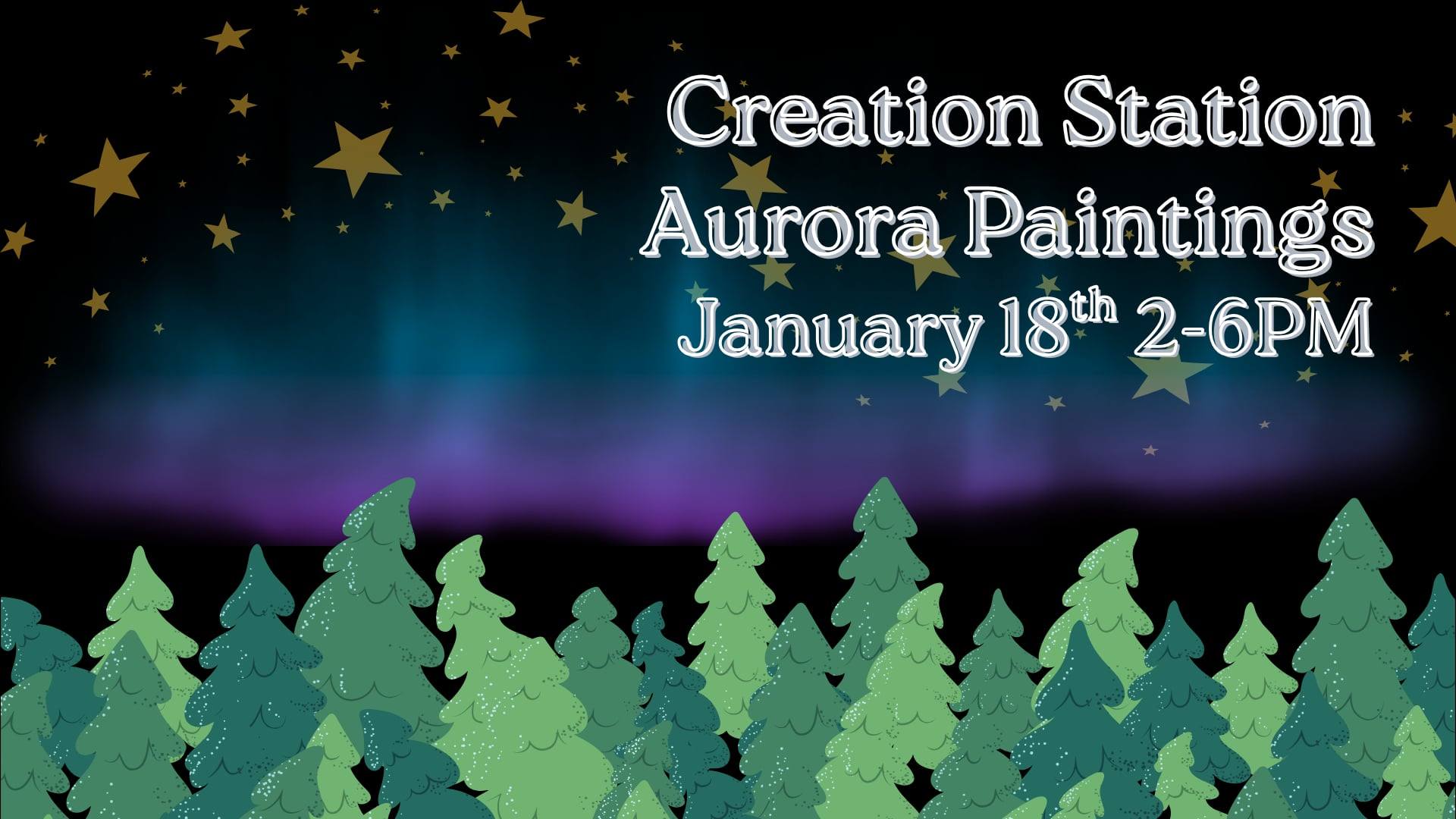 Come in and paint beautiful aurora borealis with us! Creation Station free drop-in art classes are for all ages and abilities. You are welcome to bring food and beverages to enjoy. This series of classes is generously funded by the United Way of North Central Ohio. |