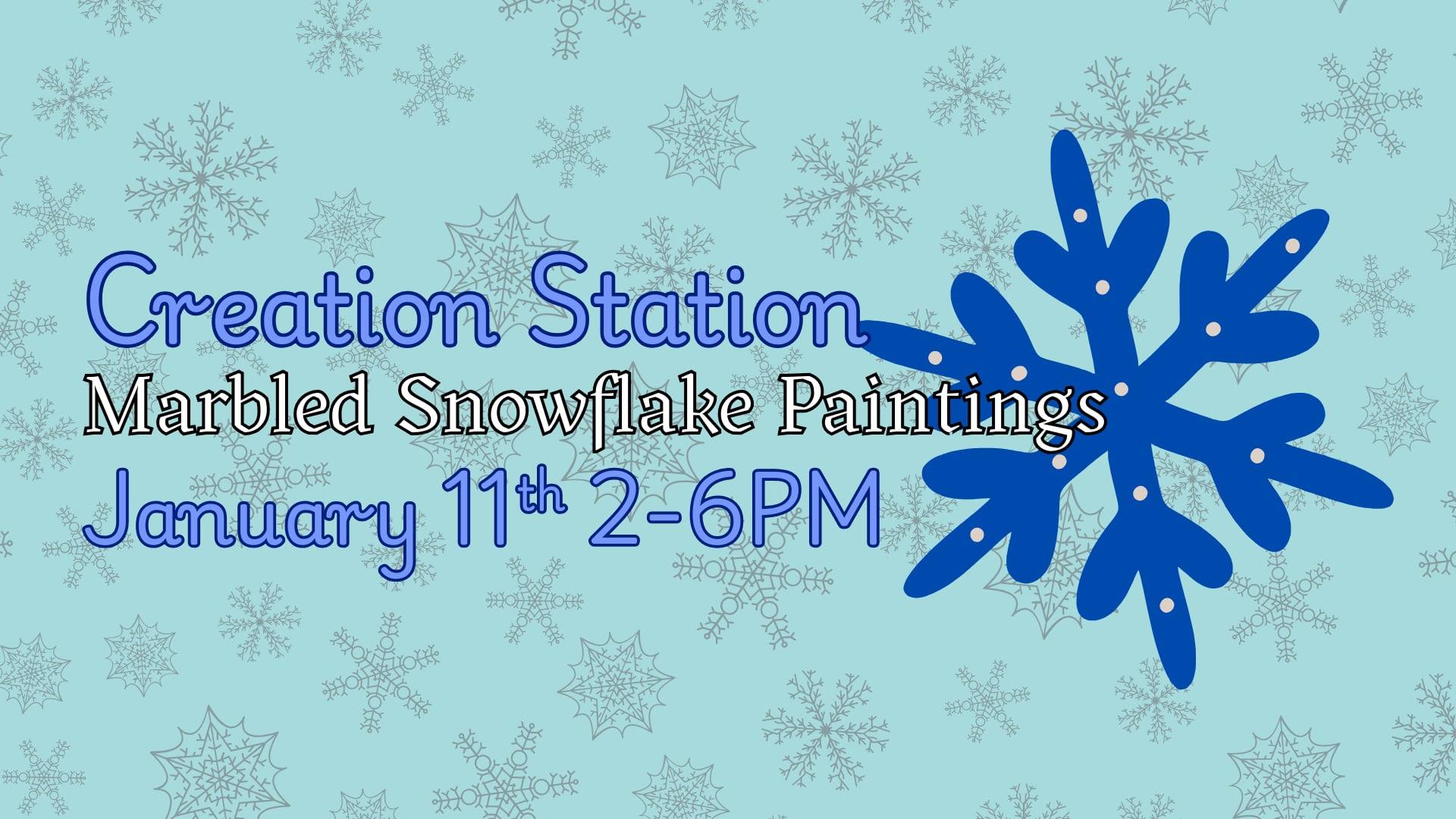 Create your own snowflakes, then marble paint on shaving cream and press down to create your own masterpiece! Creation Station free drop-in art classes are for all ages and abilities. […] |