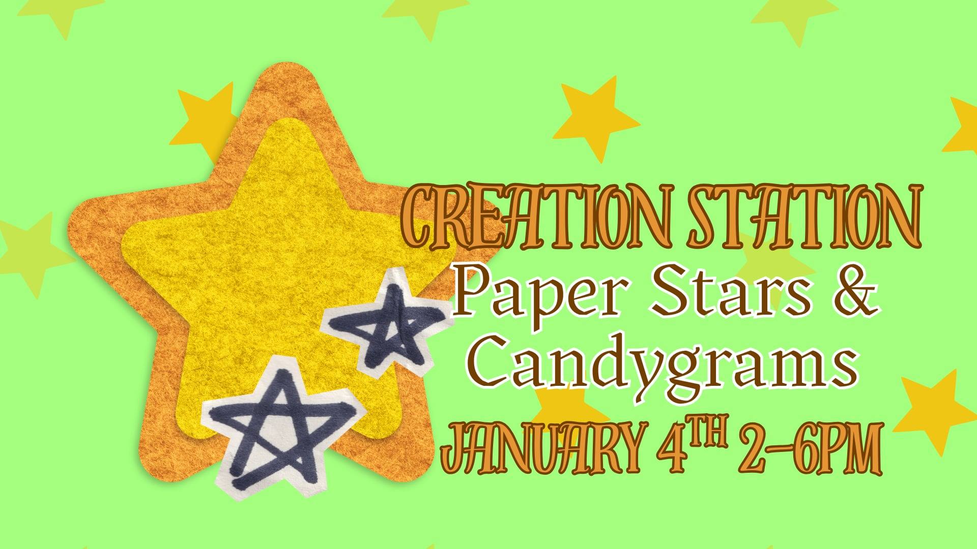 Come on in and learn how to create origami paper stars for good luck in 2026! ☆ Creation Station free drop-in art classes are for all ages and abilities. You […] |